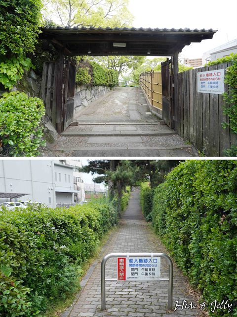 沿著路走接過一段水堀,就可以看到「船入櫓」的入口了,不過這入口是有開放時間的限