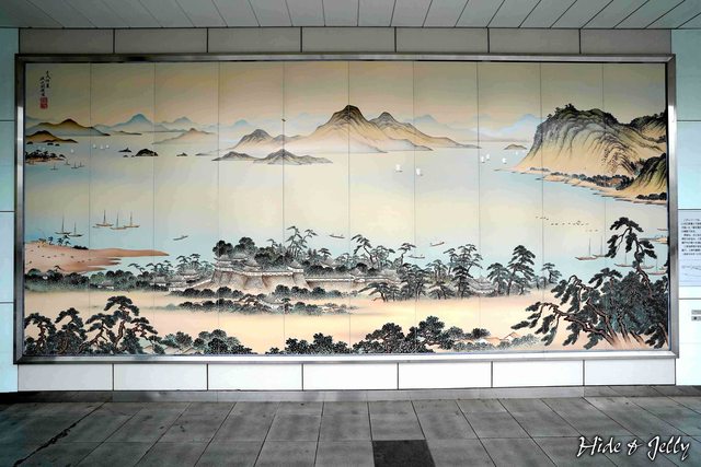 天守台內,面對月台的大大看板,不知道搭車的、等車的會不會看到才發現,原來旁邊有