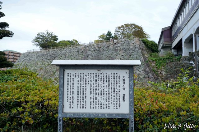 天守台西側正面,可以看到右邊的車站月台,就是這麼暴力的躺在本丸石垣上。