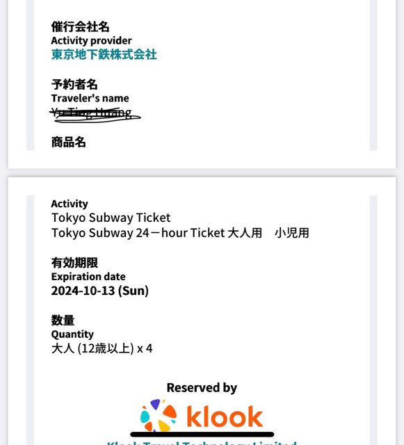 3. 買入的價格:klook$165/張 ,共4張