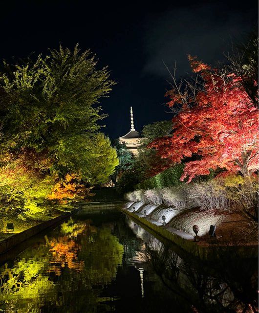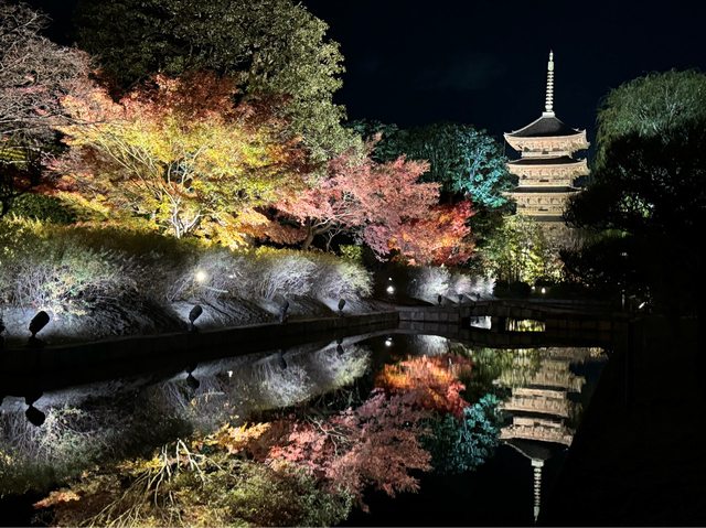 吃完逛逛百貨後前往東寺看夜楓,人挺多的,基本上就是燈光強化不夠多的楓葉,但還是