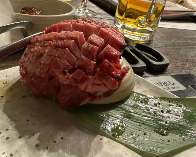 三杯酒一飲料共13000yen,肉質不錯,油花分佈均勻,值得一提的是厚切牛舌真的很厚,