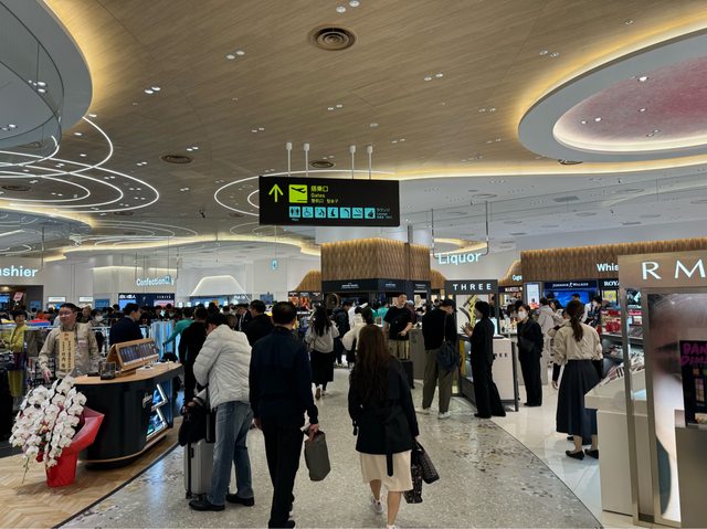 圍很寬,今天還不太需要排隊,接下來有餐廳、精品區,其中LV區域好大又氣派但我精品