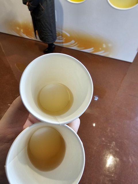 有提供一番搾り跟二番搾り的樣品,請大家觀察色澤、香味再試喝