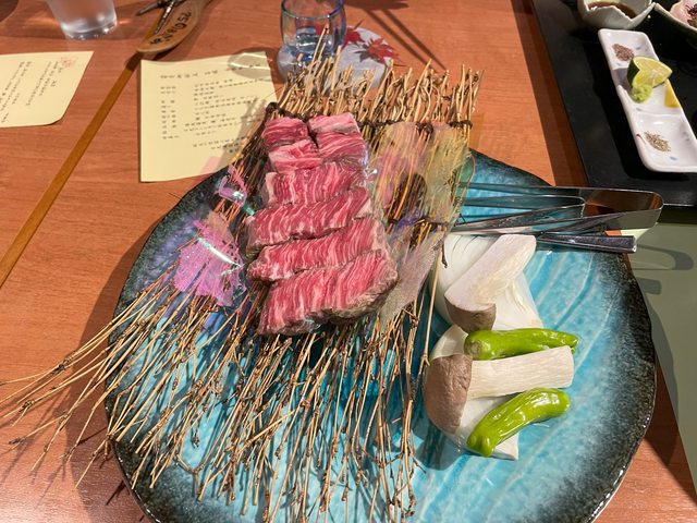 晚餐一道道上 主食是需要自己烤的鐵板牛肉(照片內為兩人份)