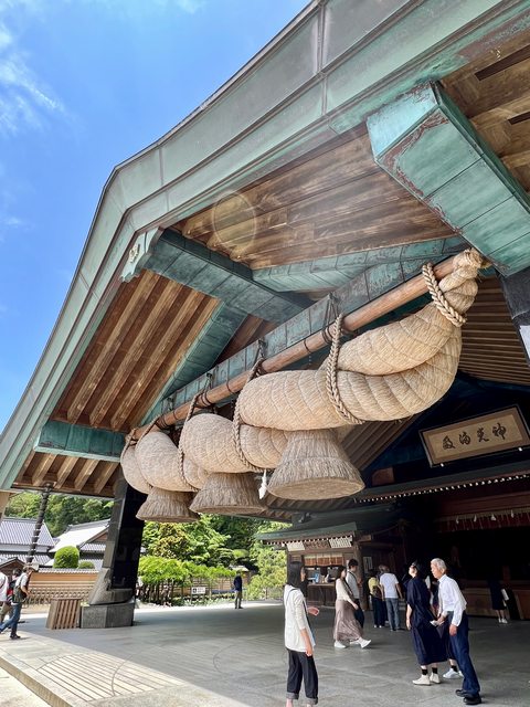 神樂殿最著名的就是那長13.5公尺,重達5.2公噸的注連繩,是日本最大規模,魄力十足