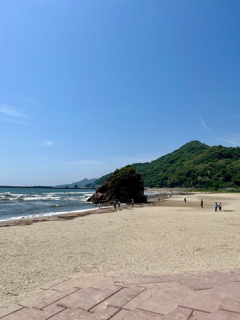 如果還有時間和精力,可以稍微走遠一點,來到稻佐之濱,一個有巨石矗立的潔白沙灘。