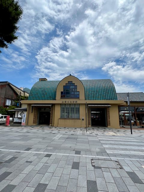 出雲大社前駅建於1930年,圓拱型的屋頂、彩繪玻璃洋溢著昭和早年的復古摩登感。