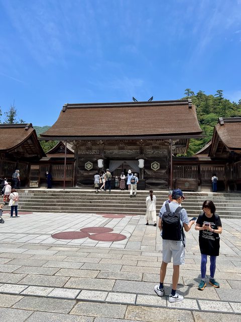 右後方的正殿是莊嚴的神域,一般民眾雖無法進入,但可以從正殿的門口「八足門」參拜