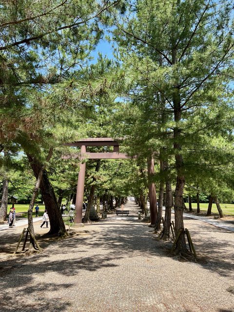 從出雲大社前駅沿著「神門通り」,走到出雲大社的「勢溜の大鳥居」,大約只需要5分