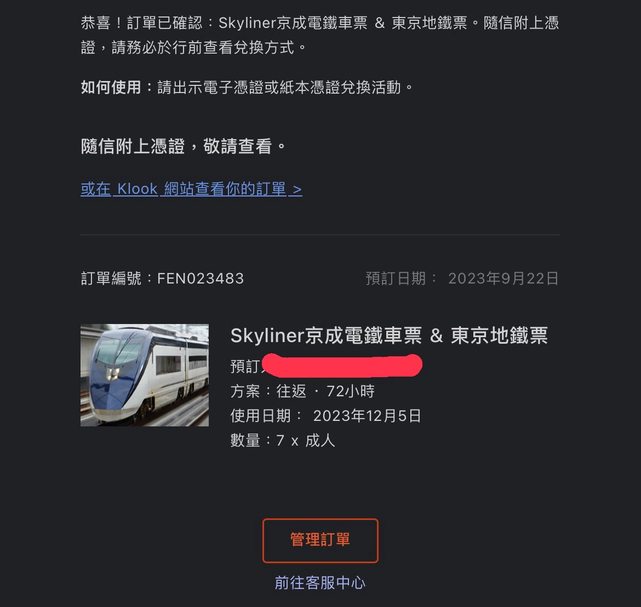 標題[讓售] Klook Skyliner京成電鐵車票 & 東京地鐵