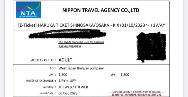 標題[讓售] 大阪到關西機場haruka 1張