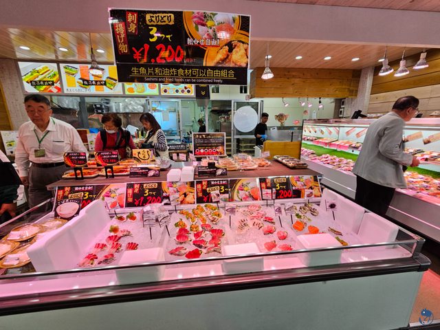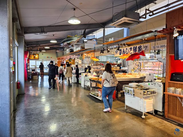 一到道之驛糸滿,馬上直衝糸滿魚市場,小巧精緻的魚市場,一共有十間店家,從生食、