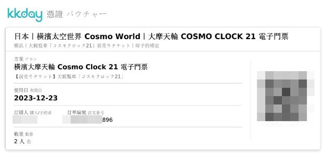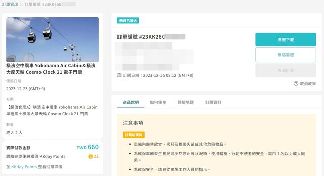 KKday購入價兩張NT660元