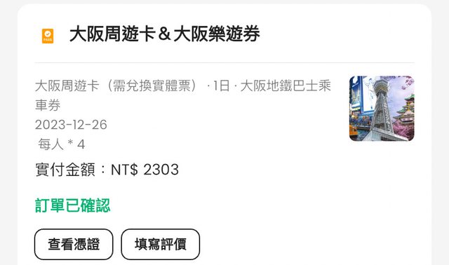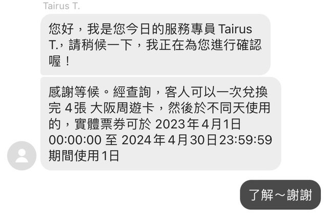 標題[讓售] 大阪周遊卡一日券 四張