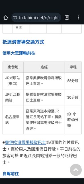 小弟預計在1/15前往奧伊吹滑雪場,已有上網查過交通方式