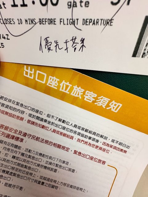 排隊Check-in等了很久,被劃了逃生口的座位。
