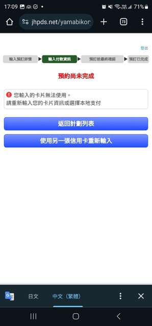 推 mazellau : 先返回計畫列表,看看有沒有在地支付的選項;或者回 01/06 17:39
