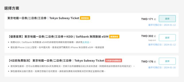 1. 讓售品項:東京地鐵一日券 24HR
