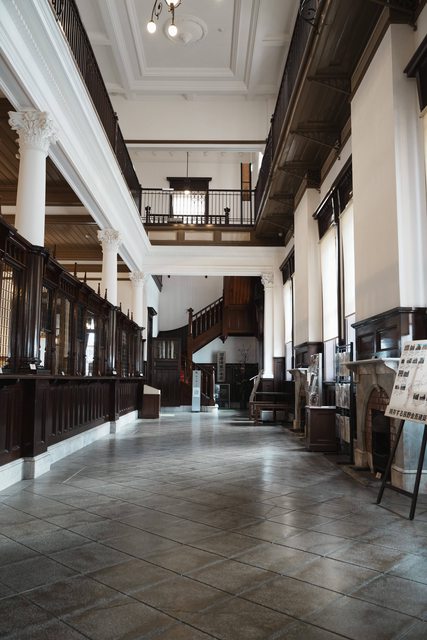 舊唐津銀行共開放兩層,一樓保留銀行窗口,二樓則介紹辰野金吾的生平與作品