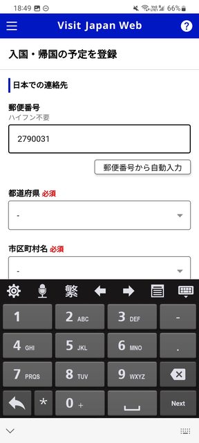 E化入境(VJW)裡,只要輸入郵遞區號,不用中間那一槓,2790031打進去。 http://i.imgur.com/SiLfsNE.jpg