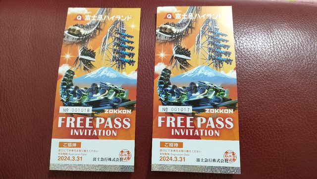 富士急樂園門票(1日通票)2張,使用期限2024/3/31