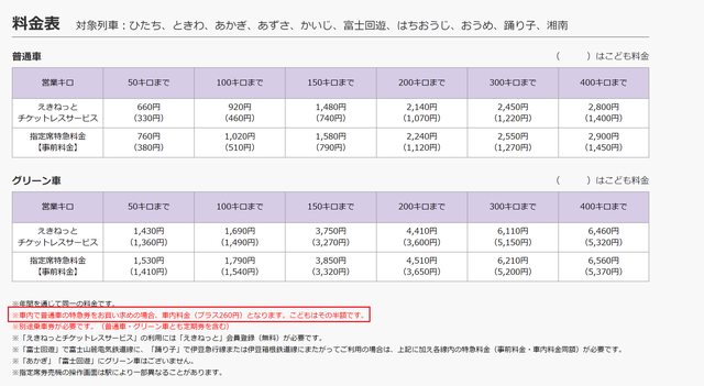 3.車上補特急券加收260円,小兒半價