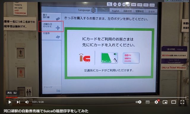 在河口湖站人工窗口單買大月到新宿的特急券,走紅框刷SUICA