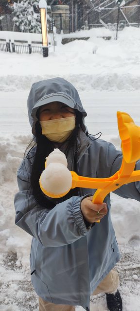 等待公車前往伊根的同時,小孩興奮地玩雪