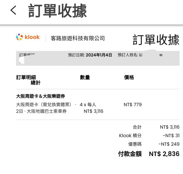 標題[讓售] 大阪二日周遊卷 四張
