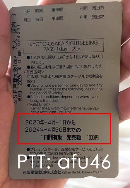 京阪:購於Klook 一張189 已換成實體券