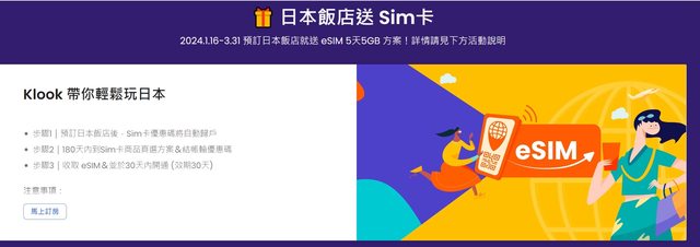 這幾天在找Sim卡的時候就有看到,Klook的官網有在做日本飯店送Sim卡,你可能會想問我說為什麼要住露營車了還是要找飯店!?