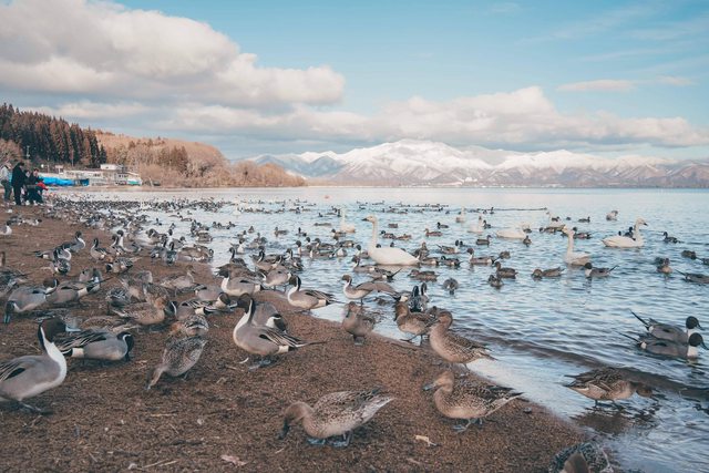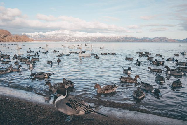 稍稍繞去豬苗代湖北面的長濱公園觀賞鴨雁天鵝成群越冬的景色