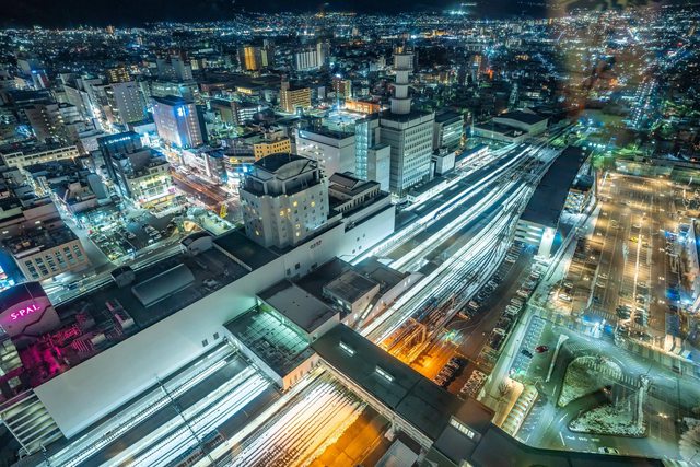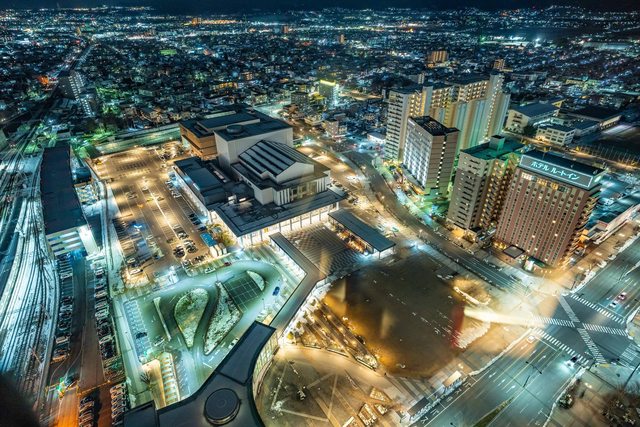 飯後就散步到與車站相連的霞城中央大樓的免費觀景台看看山形的夜景