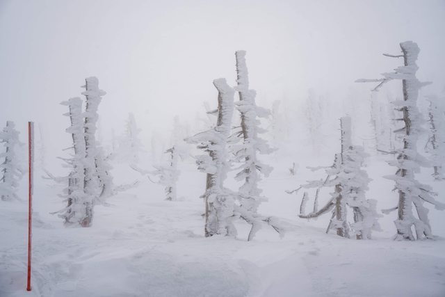 不過因為前一陣子暖日的影響,本應相當壯觀的樹冰看起來像從冰箱冷凍庫拿出來的小冰柱…