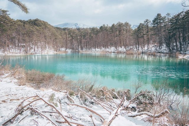 從停車場沿小路步行約40分鐘可以到達豬苗代湖的樹冰景點