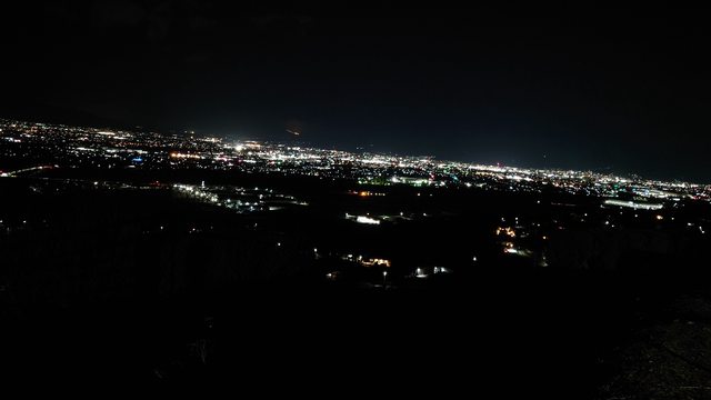 泡完溫泉下山途中拍的甲府夜景+富士山