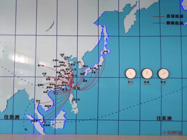 二樓航站辦公室旁邊,還有一面亞州平面圖,還提供了曼谷/高雄/東京的時間