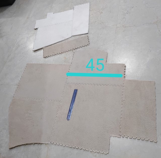 原本邊長45公分,但配合家具形狀裁切過