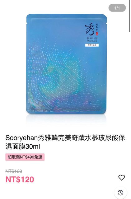 再加送一片秀雅韓面膜