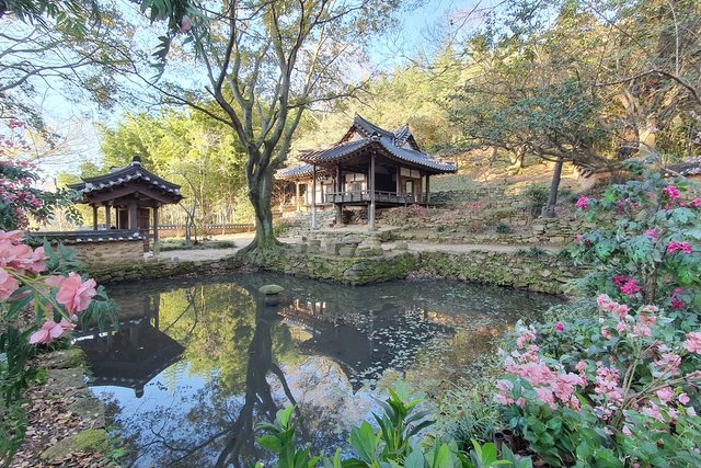 悅話亭是江洞村中地勢最高的古宅,為朝鮮憲宗時期學者李鎮晚為培養後輩所建立。宅前