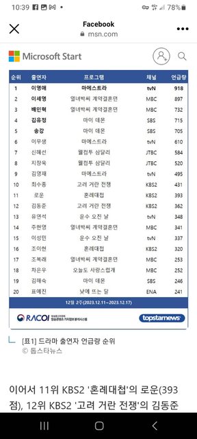 #李英愛本週排名第一,恭喜