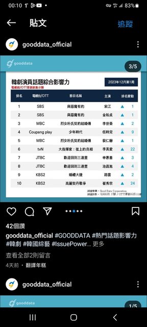 標題[情報] RACOI12月第2週電視劇&演員話題排行