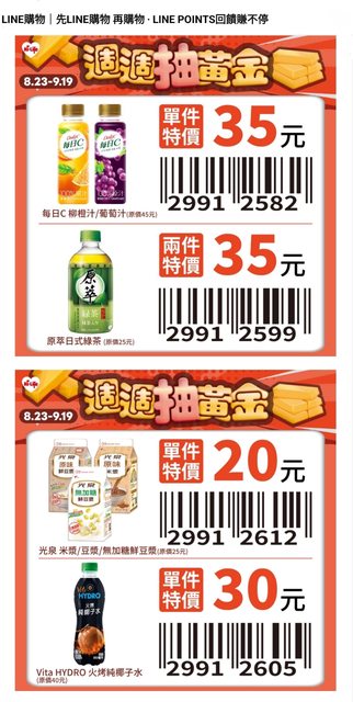 標題[情報] 萊爾富 8/23-9/19 Line導購優惠券