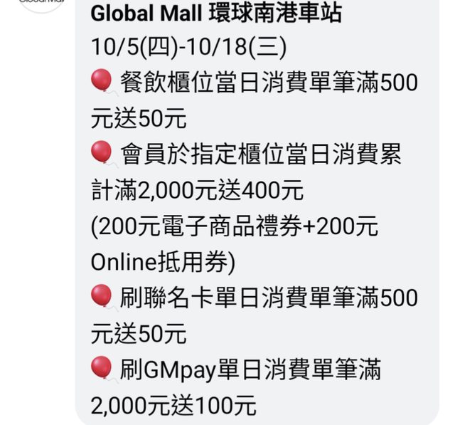 剛才看到的,內容感覺可以,但不確定是不是只到連假最後一天(10/10)還是週年慶最後一天(10/18)