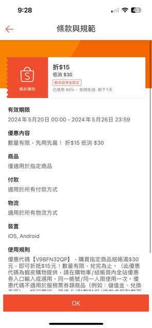 標題[情報] 蝦皮-超便宜限定折價券30折15