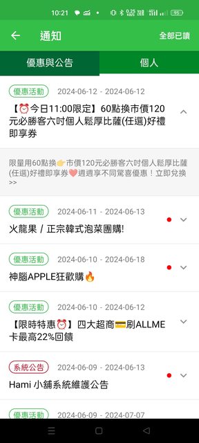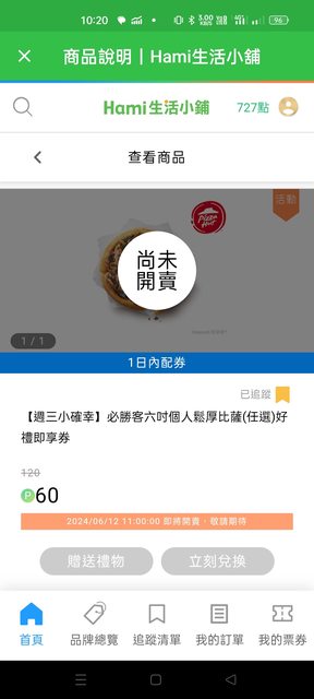 標題[情報]Hami app 60點換必勝客個人披薩