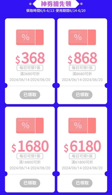 提醒要買伊萊克斯跟輝葉的人可以今天先領368的折價券,等6/14用券買更便宜