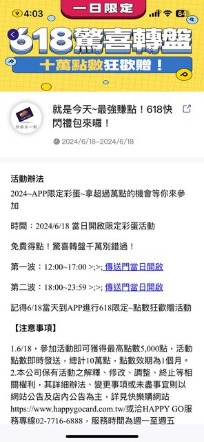 推 tmac40208: 剛參加上一波HAPPY GO抽獎 點數拿得還 106.64.56.30 06/18 19:26
