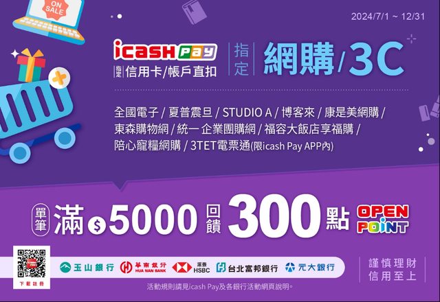 指定銀行加碼300點還有博客來 、全國電子 、 夏普震旦、康是美網購等通路,活動時間